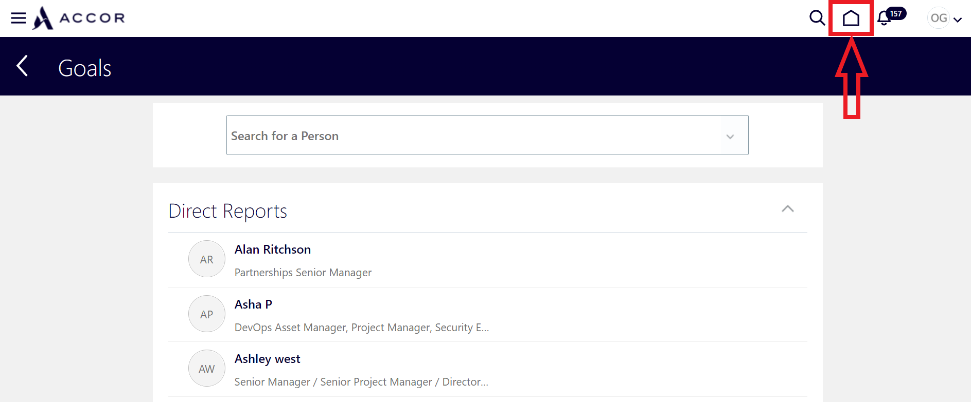 Select the employee for whom you would like to add a Development Goal Development Goal by clicking on his/her name:
