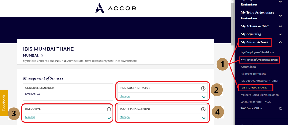 2) The INES Administrator who has the same role as the GM and act as a back up, he can manage users accesses, data and set up services for the hotel.