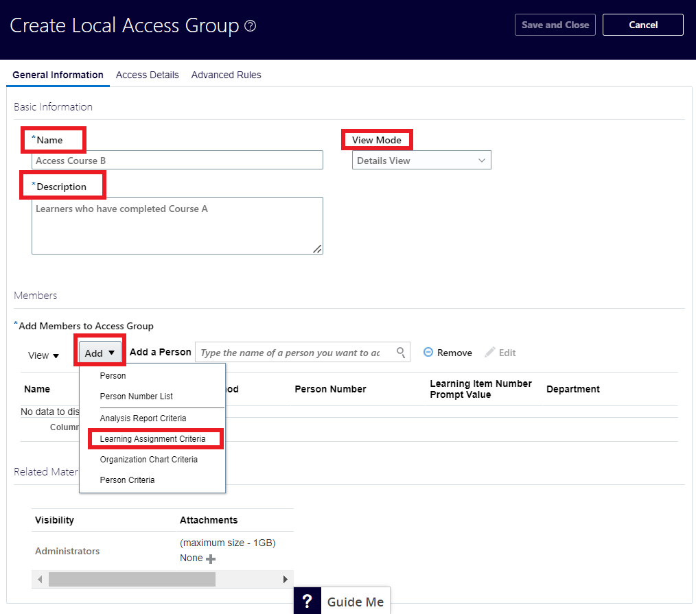 Then to add members of your Access group, click Add -> choose Learning Assignment Criteria.