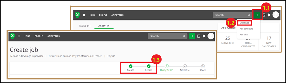 Once you have completed the remaining fields and the job is published, you will see the number of positions you opened in the Job Details tab on the Job.