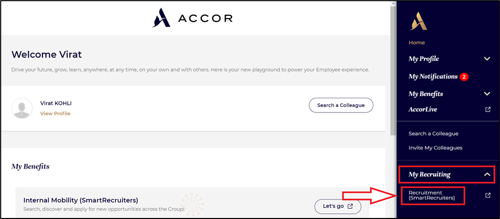 Login into My Heartist Portal as a Hiring Manager/Recruiter >> Click on the”Recruitment (SmartRecruiters)” tab from ”My Recruiting”.