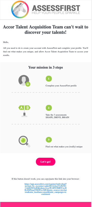 5/ Assessfirst automatically sends an email to the candidate so that they can complete the assessment :
