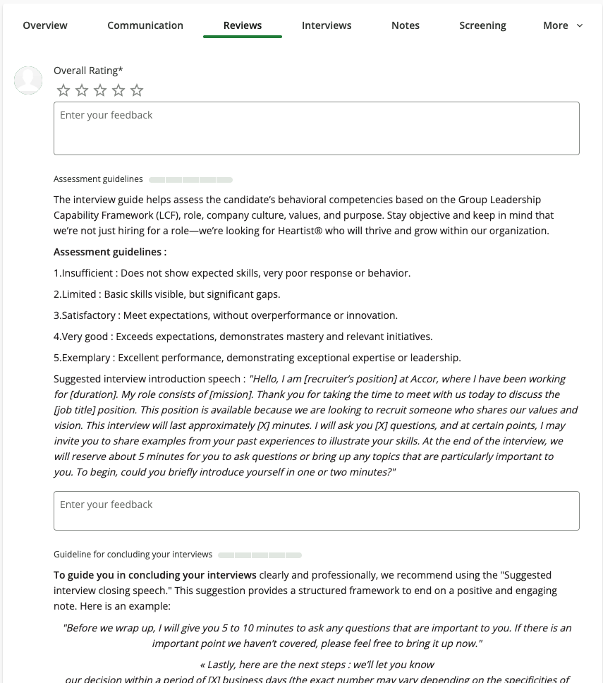 1/ When creating your job, you can choose an interview guide which will be automatically integrated into the candidate's profile in the review tab.