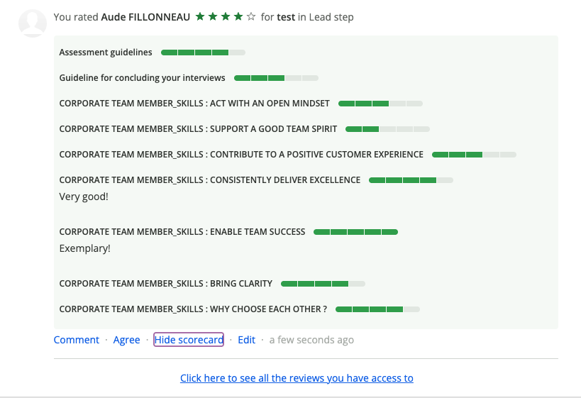 2/ From the Reviews tab of the candidate profile, your scorecards will appear: